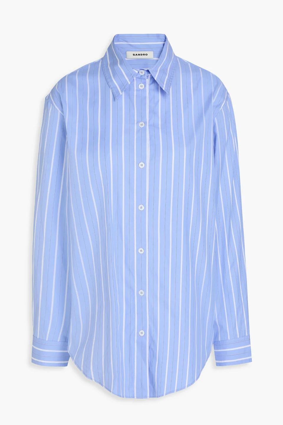 Shirt striped cotton-poplin guipure lace trims cutout buttoned cuffs ties at back button fastenings through front mid-weight, non-stretchy fabric dry clean imported 100% Cotton Product Code 46376663162843823