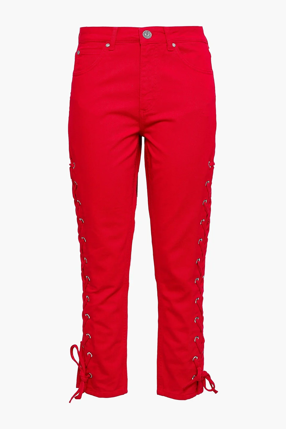 Straight leg jeans denim cropped lace-up sides multipockets belt loops high-rise cut button and concealed zip fastening at front non-stretch denim machine wash imported 100% Cotton Product Code 2507222119677642