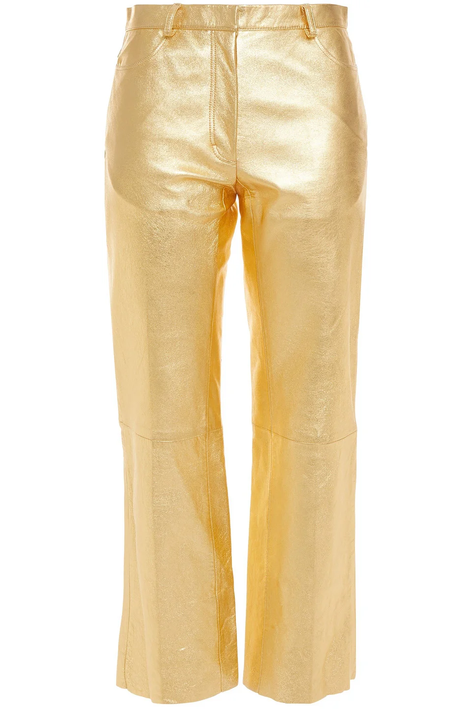 Kick-flare pants metallic textured-leather multipockets belt loops high-rise cut concealed hook, button and zip fastening at front fully lined unfinished hem supple, stretchy leather specialist clean imported 100% Lambskin Product Code 10163292707421203