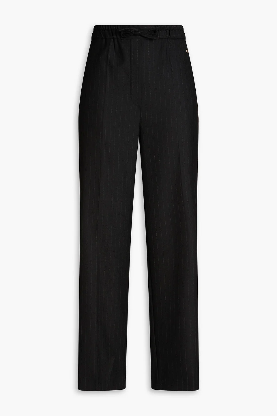 Wide-leg pants pinstriped twill pressed creases two side slant pockets elasticated drawstring waist high-rise cut pull on mid-weight, slightly stretchy fabric dry clean imported 54% Polyester 45% Wool 1% Elastane Product Code 1647597349172659