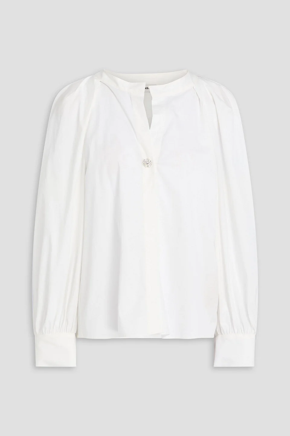 Shirt cotton-blend pleated crystals buttoned cuffs partially concealed button fastenings through front mid-weight, non-stretchy fabric machine wash or dry clean imported 97% Cotton 3% Elastane Product Code 46376663162957957