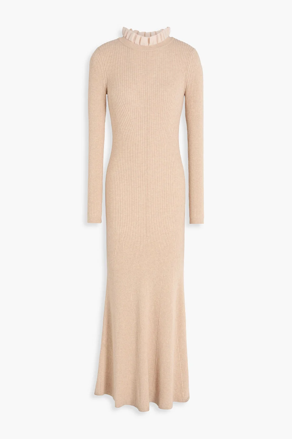Ruffled ribbed-knit maxi dress