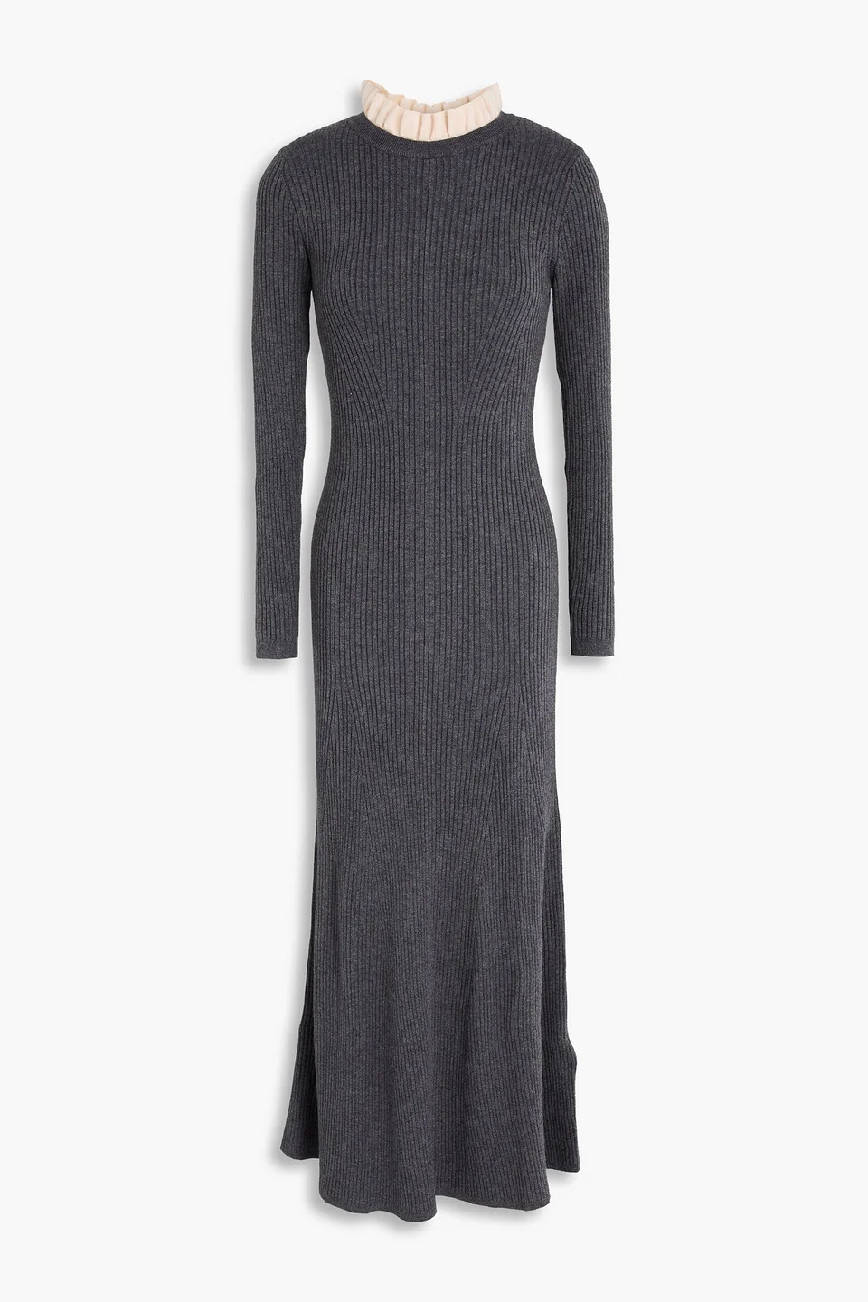 Ruffled ribbed-knit midi dress
