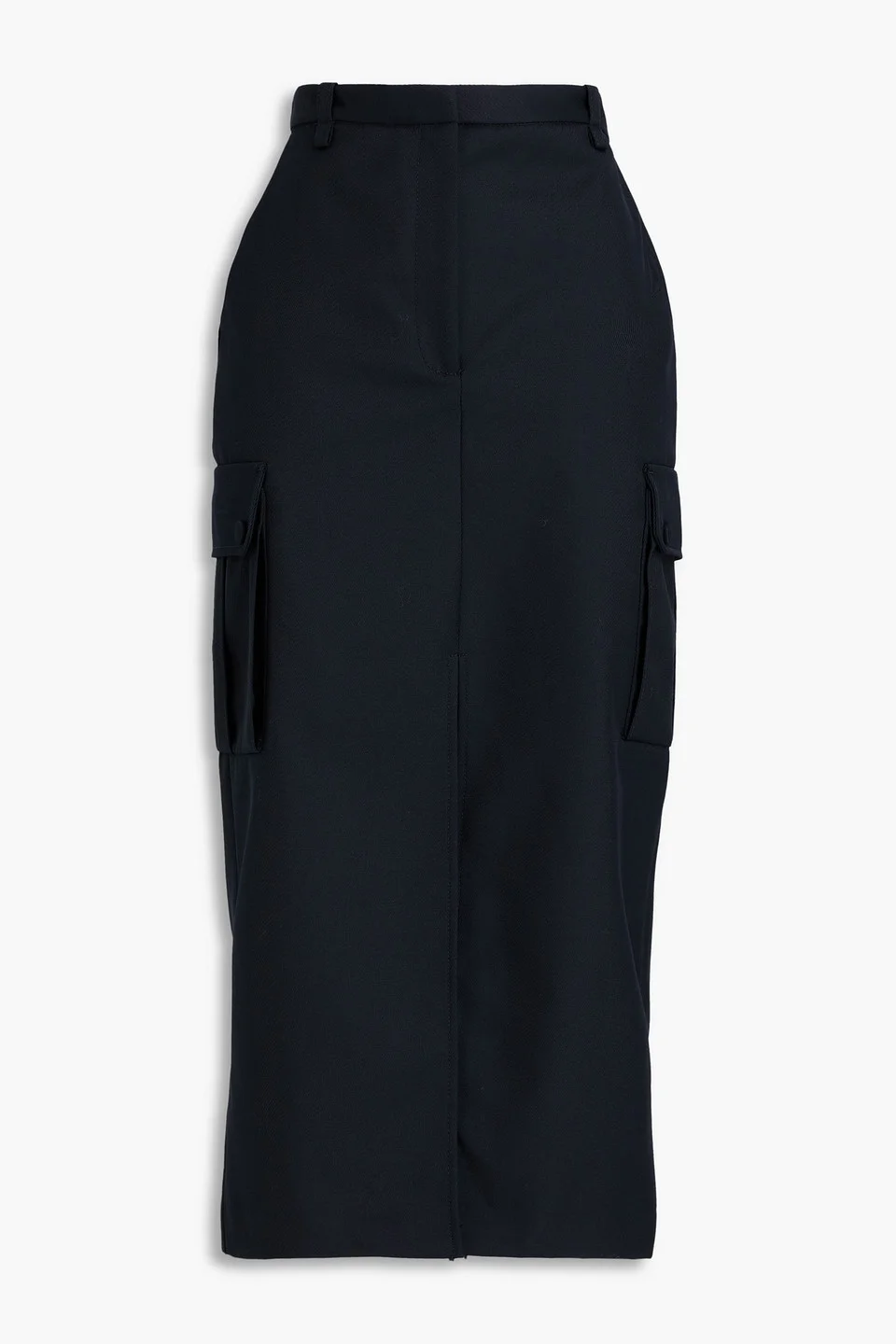 Skirt twill belt loops side flap pockets side slant pockets front split mid-weight, non-stretchy fabric concealed hook, button and zip fastening at front dry clean imported 55% Polyester 45% Virgin Wool Product Code 46376663162952212
