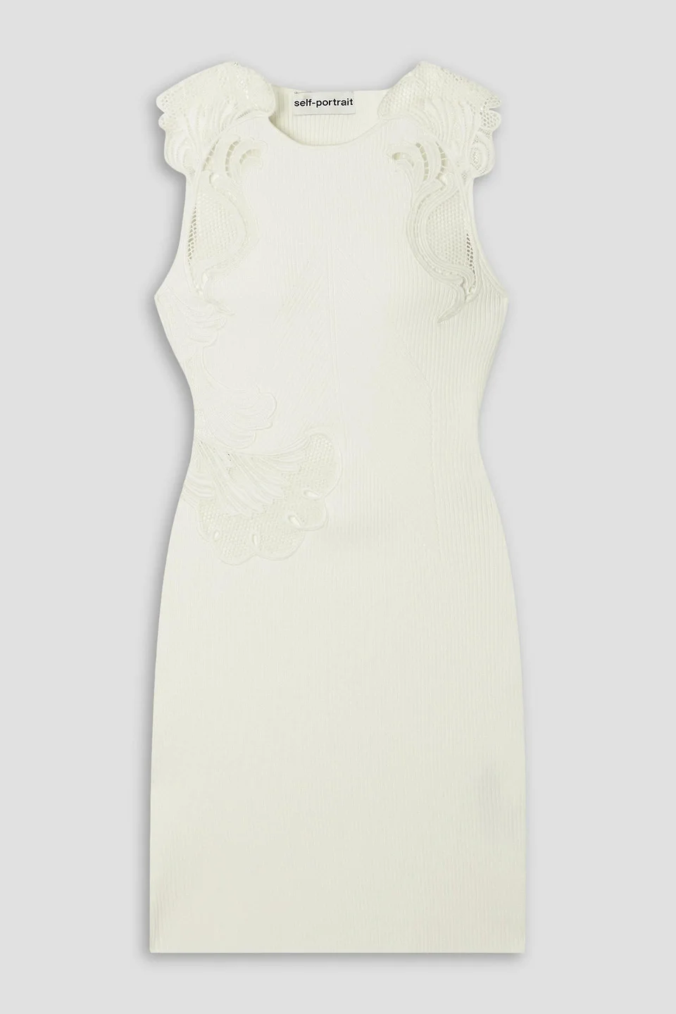 Dress lace ribbed-knit paneled slips on mid-weight knit dry clean imported Self-Portrait makes a compelling case for the little white dress with this cool mini style. It's made from soft ribbed-knit paneled with the label's signature lace. The best part? You could wear with sandals, ankle boots or mules. 56% Viscose 43% Polyamide 1% Elastane Product Code 1647597347807857