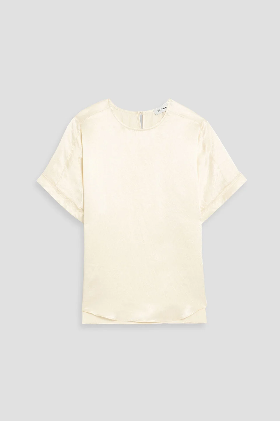 Top satin crinkled button-fastening keyhole at back mid-weight, non-stretchy fabric dry clean imported 100% Acetate Product Code 46376663163098546