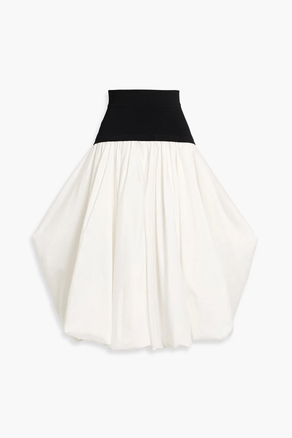 Corrin ribbed-knit and cotton-poplin midi skirt