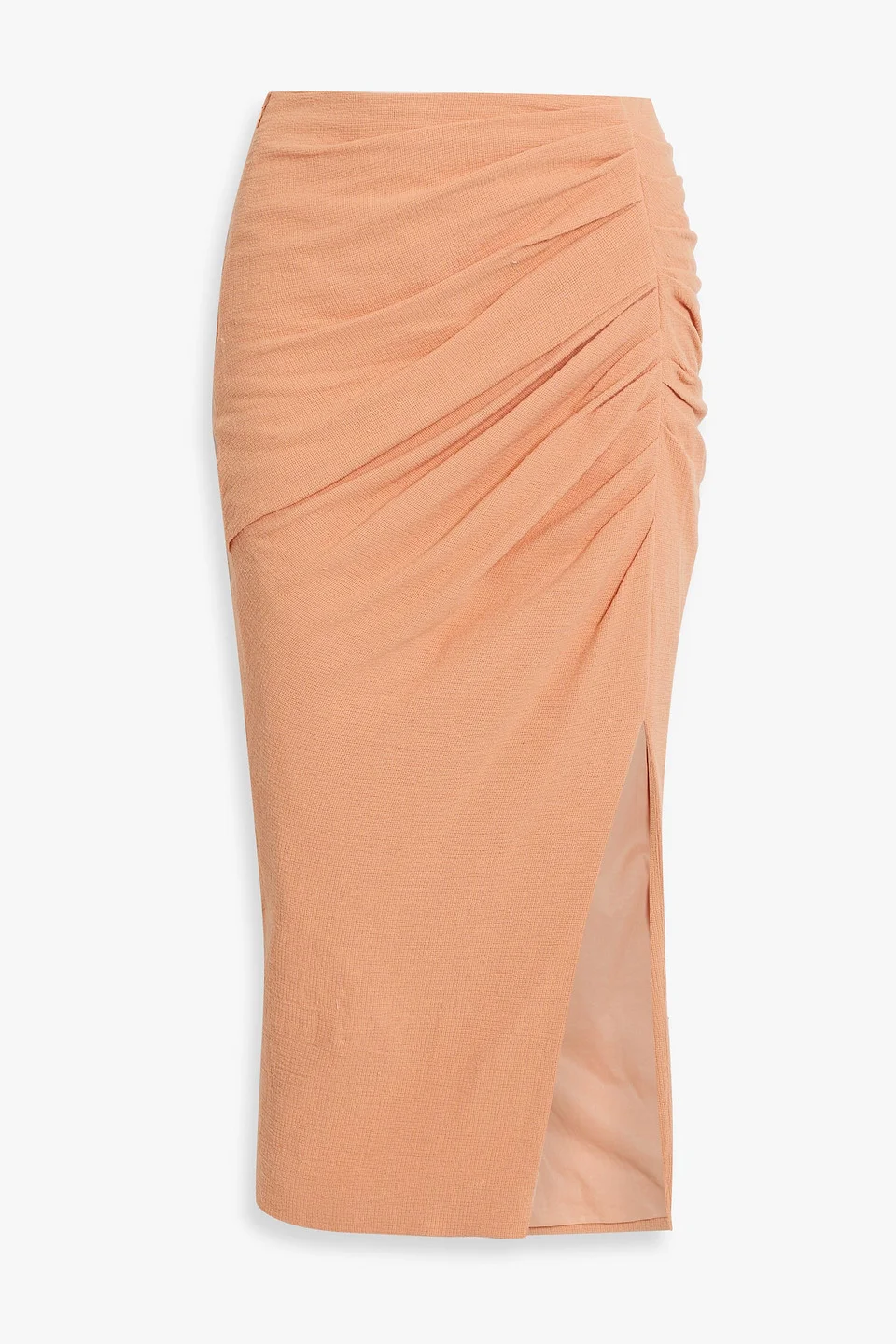 Hayden ruched cotton-blend midi skirt