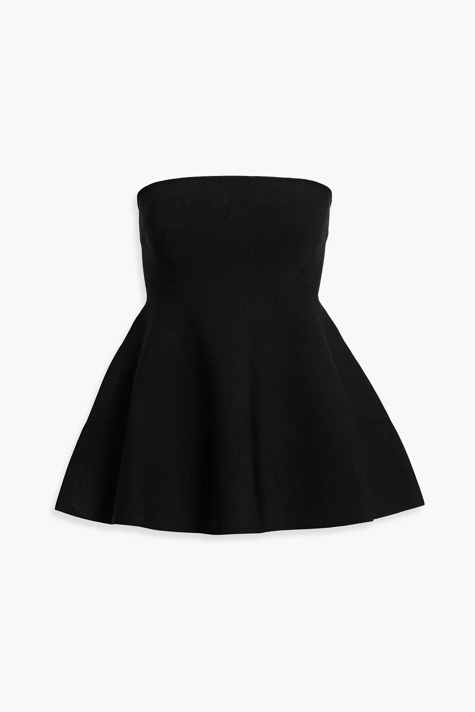 Strapless top stretch-knit peplum concealed zip fastening through back mid-weight knit dry clean imported 78% Rayon 16% Polyester 5% Nylon 1% Spandex Product Code 46376663163129753