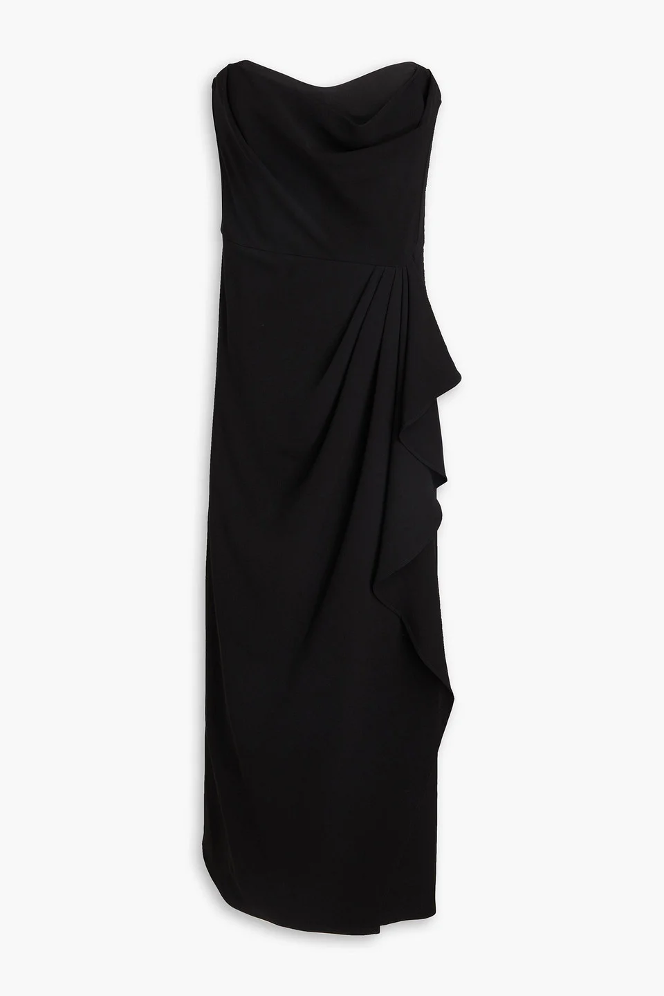Strapless dress crepe wrap-effect draped concealed zip fastening along back mid-weight, slightly stretchy fabric dry clean imported 71% Acetate 29% Polyester Product Code 1647597341678475