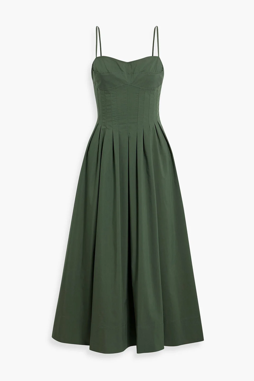 Dress cotton-blend poplin pleated concealed hook and zip fastening at side fully lined mid-weight, non-stretchy fabric dry clean imported Make every day feel like an occasion with Simkhai’s ‘Kittiya’ midi dress. It feels classically feminine with a modern twist thanks to the perfect pleats and rich, earthy green colorway. The corset-inspired bodice meets a full skirt that’s made for twirling (and yes, it has pockets). 63% Cotton 37% Polyester Product Code 46376663163008742