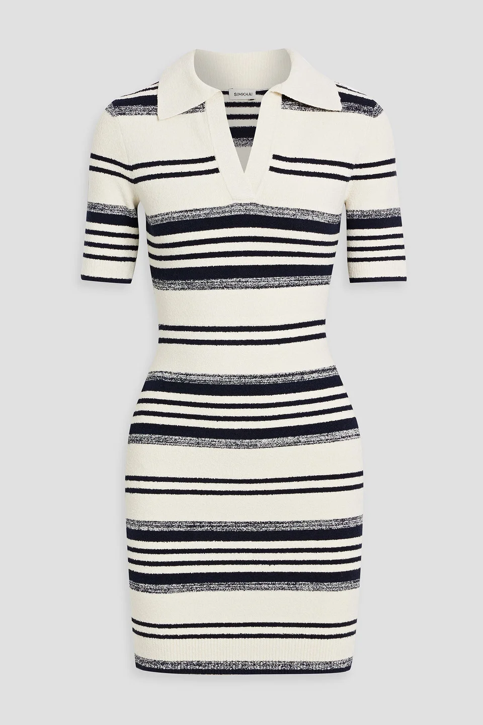 Dress striped boucle-knit ribbed trims slips on mid-weight knit dry clean imported 71% Rayon 28% Nylon 1% Spandex Product Code 46376663162887875
