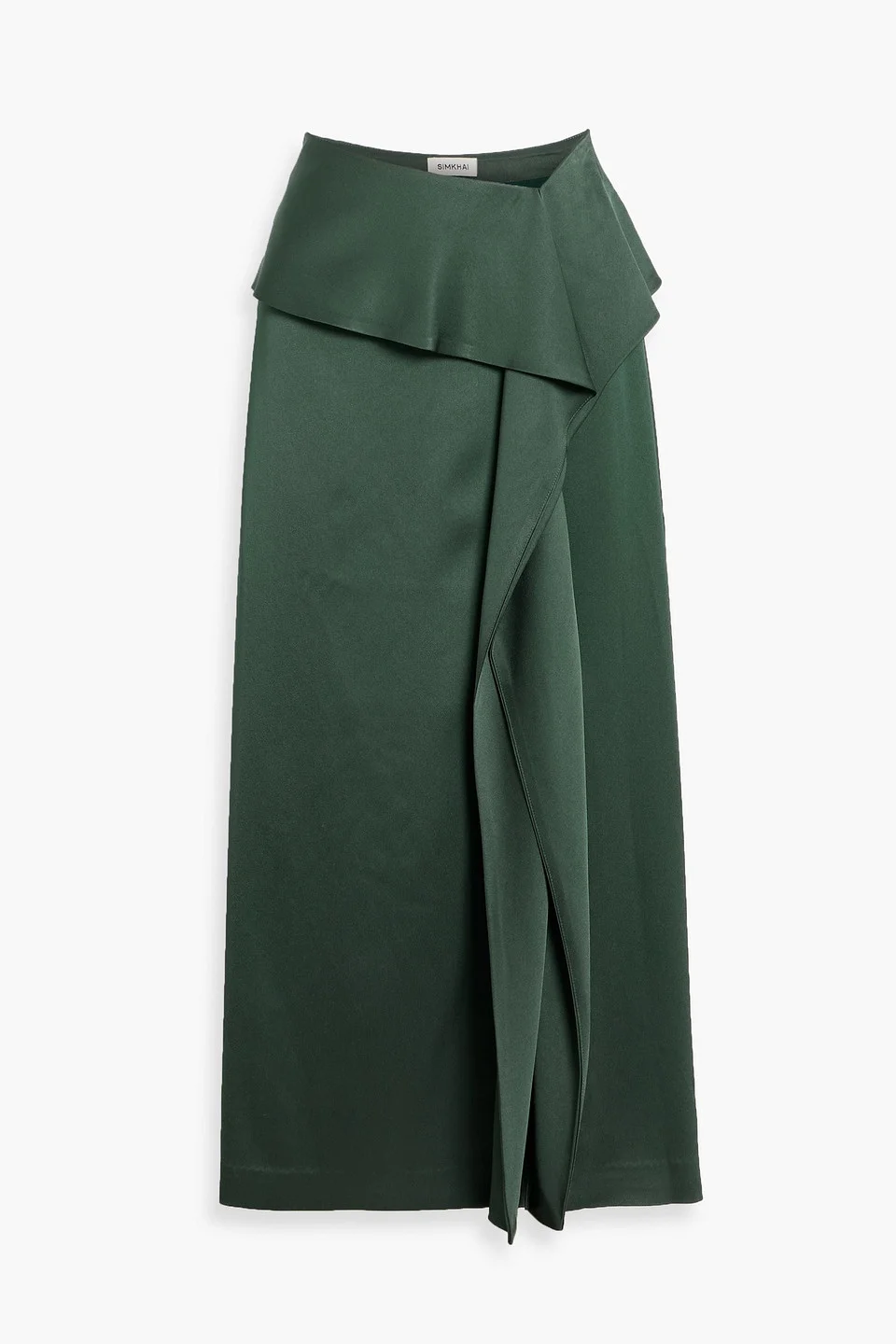 Skirt satin draped front slit fully lined concealed hook and zip fastening at side mid-weight, non-stretchy fabric dry clean imported 84% Acetate 16% Polyester Product Code 46376663163130496
