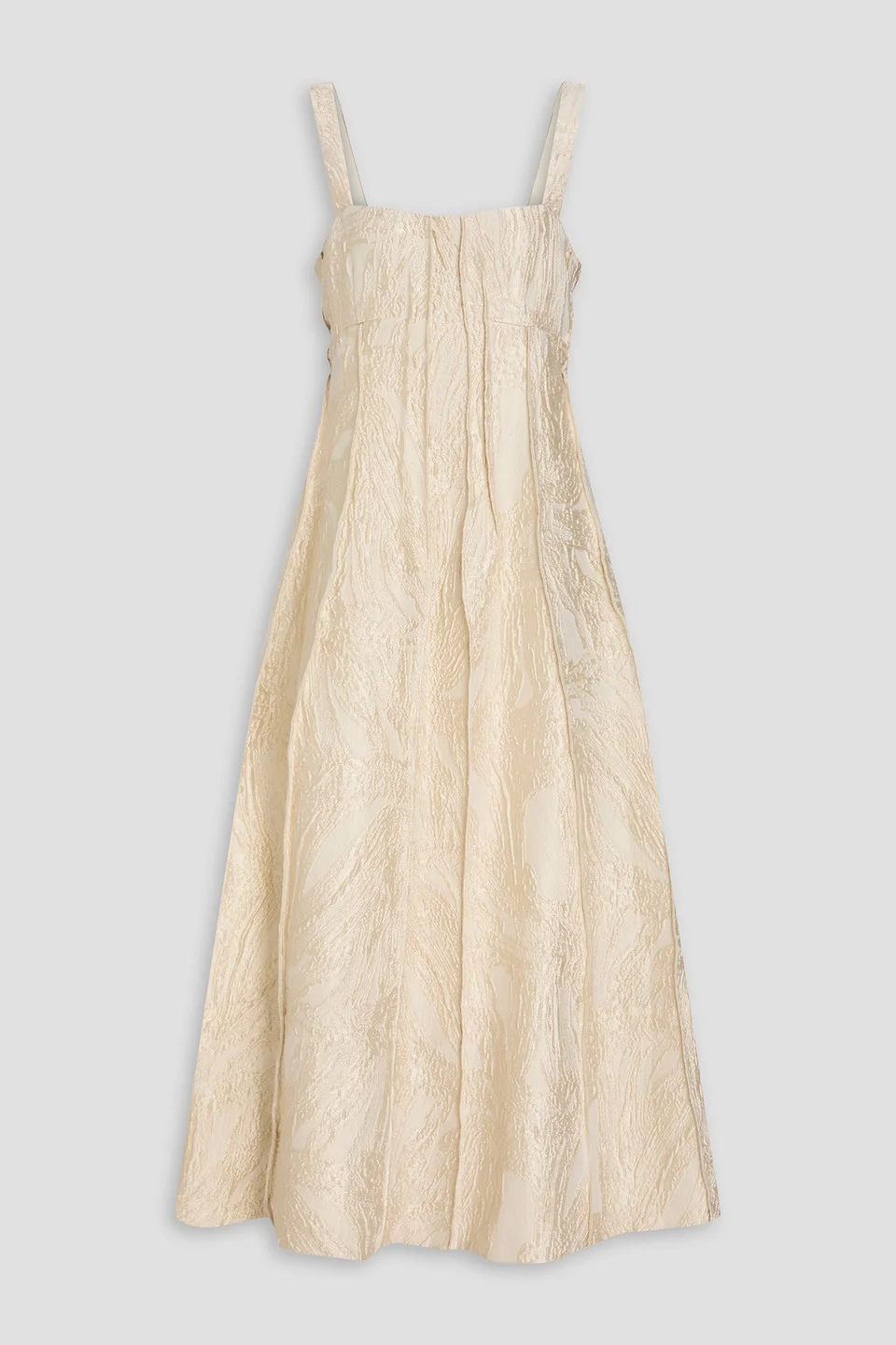 Dress metallic cloque pintucked side slit pockets concealed hook and zip fastening at side fully lined mid-weight, non-stretchy fabric dry clean imported 87% Polyester 13% Nylon Product Code 46376663162998316