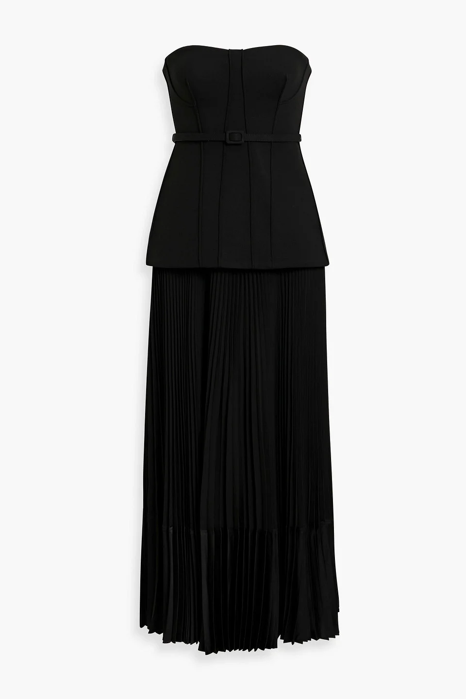 Strapless dress crepe pleated detachable belt concealed hook and zip fastening at back fully lined mid-weight, non-stretchy fabric dry clean imported Black is never boring in Simkhai’s ‘Prisca’ dress. Cut from fluid crepe, the strapless silhouette has a fitted bodice before falling to a pleated skirt. The detachable belt cinches the waist to enhance its femme and sophisticated feel. 71% Acetate 29% Polyester Product Code 46376663163008758
