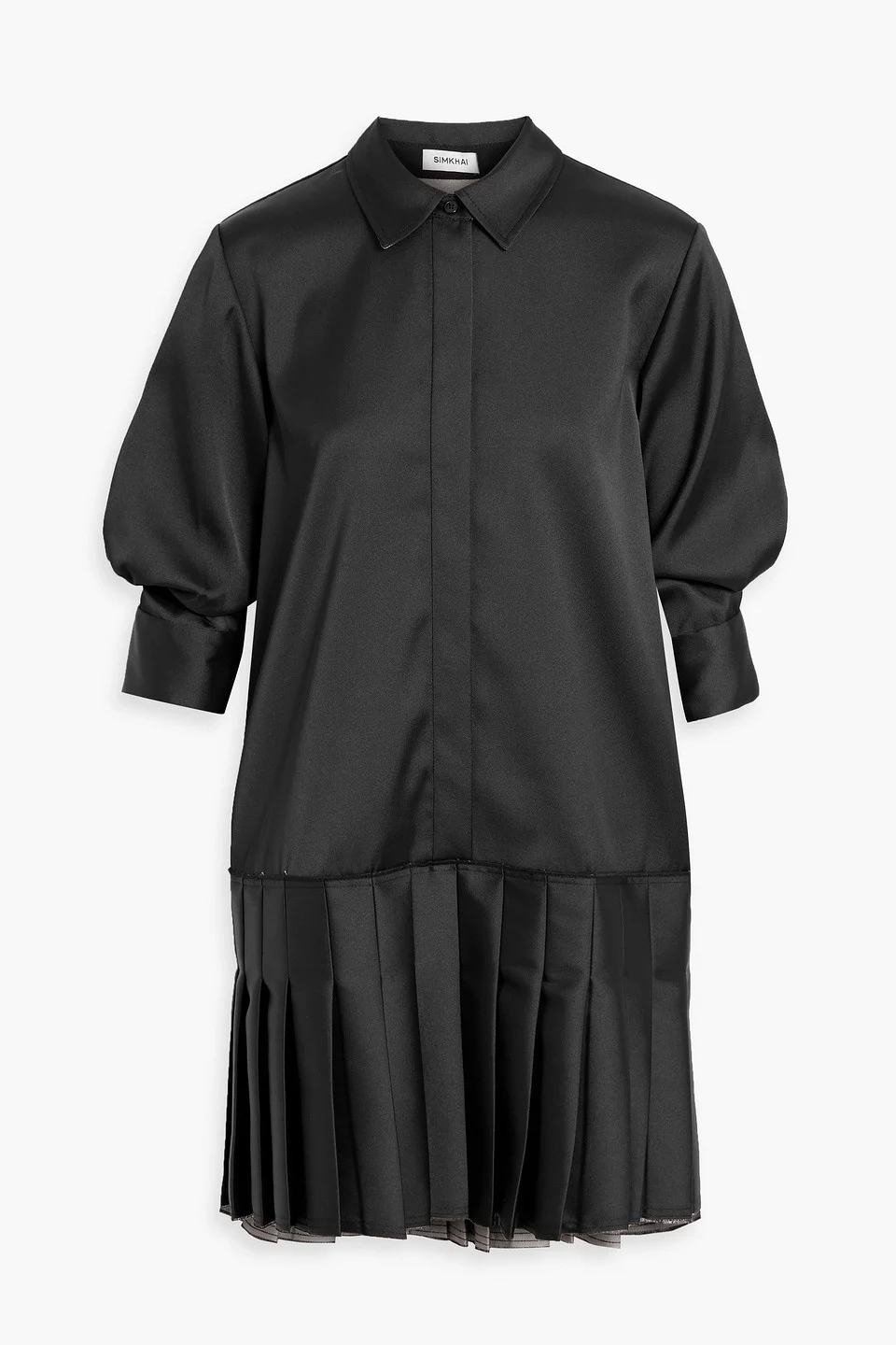 Shirt dress twill pleated drop waist front slant pockets partially concealed button fastenings through front mid-weight, non-stretchy fabric dry clean imported 100% Polyester Product Code 46376663163128675