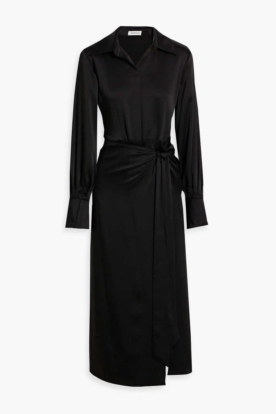 Shirt dress satin-crepe wrap-effect waist ties buttoned cuffs front split concealed button fastenings through front partially lined mid-weight, non-stretchy fabric dry clean imported 89% Acetate 11% Polyester Product Code 46376663162887912