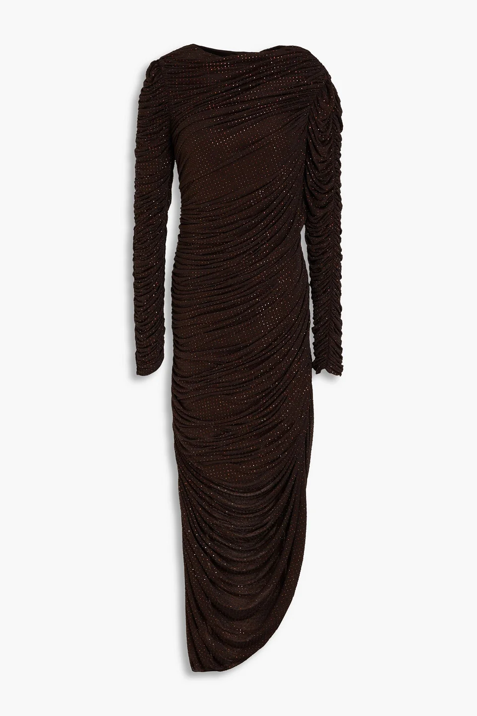 Dress jersey crystals ruched side split asymmetric hem concealed zip fastening along side fully lined mid-weight, stretchy fabric dry clean imported 100% Polyester Product Code 1647597351669773