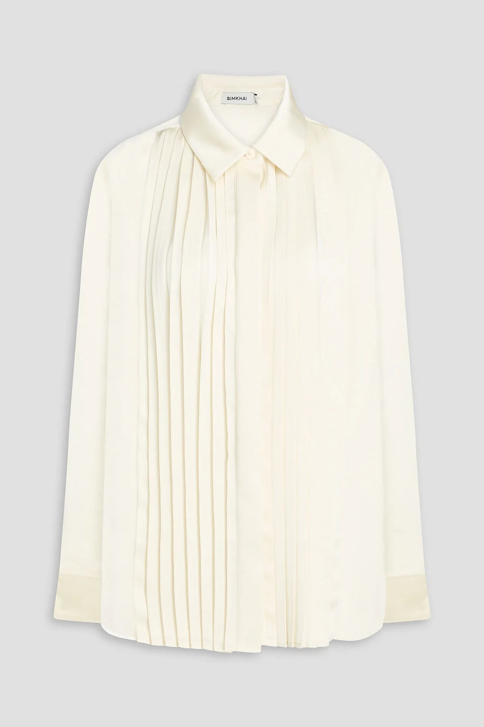 Shirt satin georgette paneled pleated buttoned cuffs side slits partially concealed button fastenings through front lightweight, non-stretchy fabric dry clean imported 100% Polyester Product Code 1647597358453352