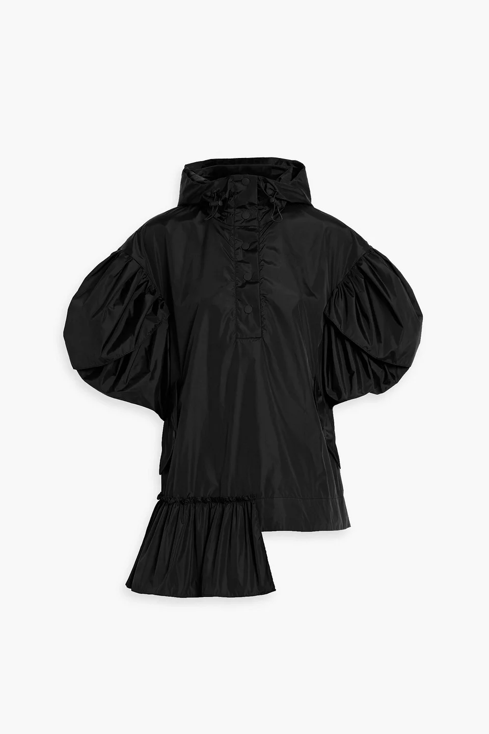 Top taffeta drawstring hood ruched puffed sleeves side flap pockets asymmetric hem snap fastenings along front mid-weight, non-stretchy fabric dry clean imported 100% Polyamide Product Code 46376663163104624