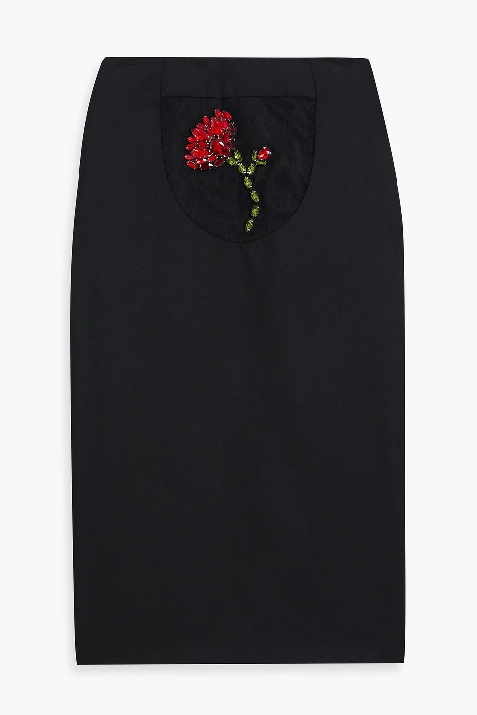 Skirt mesh twill crystals paneled fully lined concealed hook and zip fastening at back mid-weight, non-stretchy fabric hand wash imported 100% Virgin Wool Product Code 46376663163075704