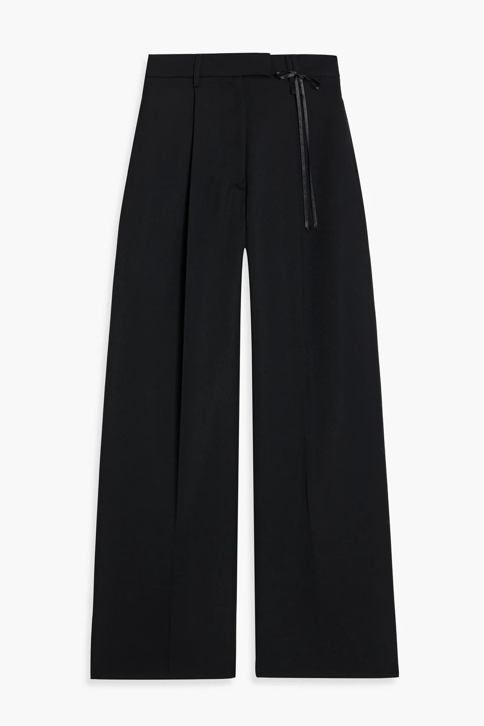 Wide-leg pants crepe pleated bow-detailed front slant pockets back flap pocket belt loops high-rise cut concealed hook, button and zip fastening at front mid-weight, non-stretchy fabric dry clean imported 55% Polyester 45% Virgin Wool Product Code 46376663163106113