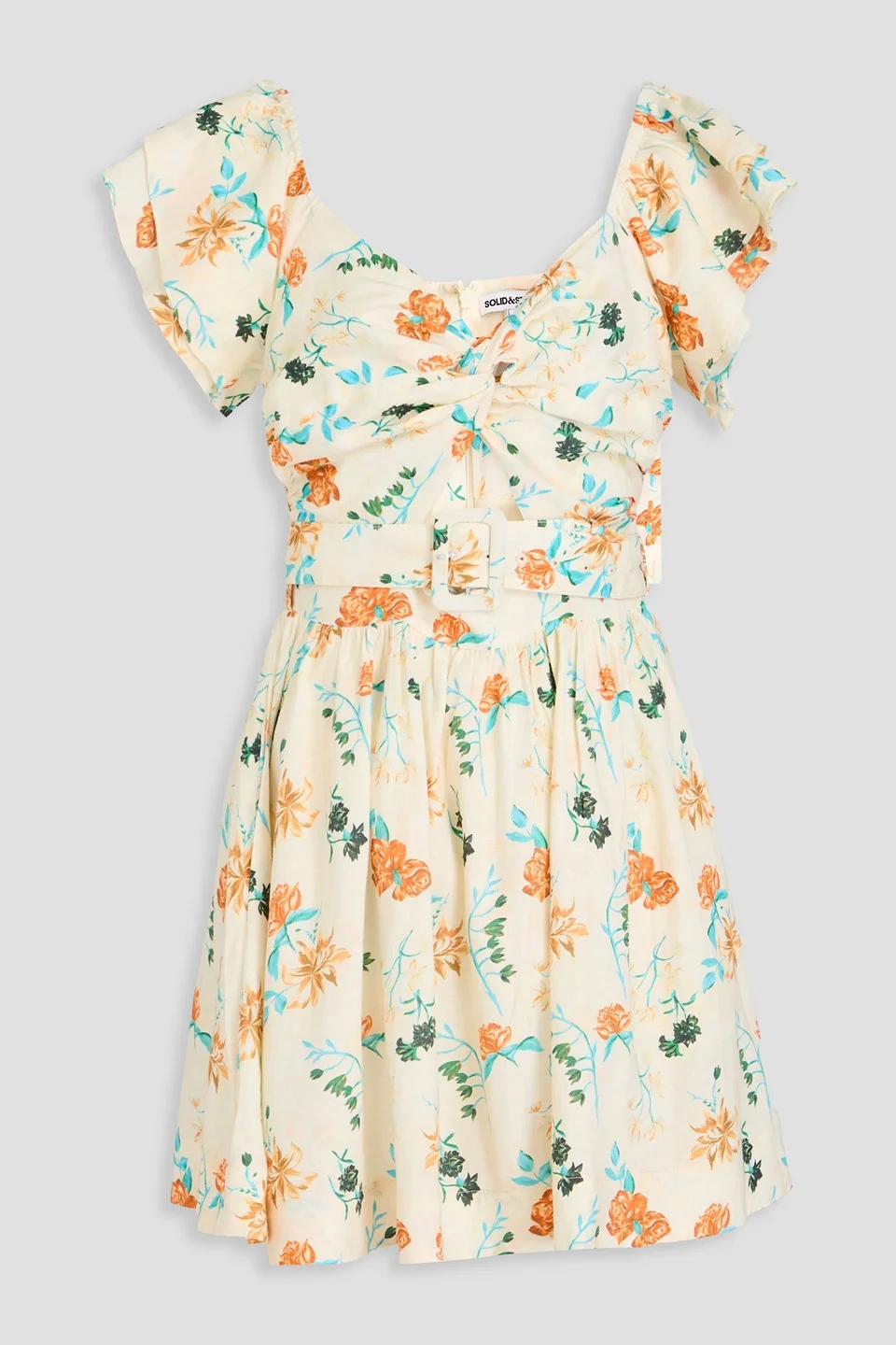 The Renata cutout floral-print linen-blend mini dress