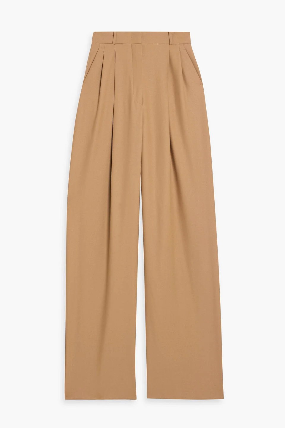 Wide-leg pants wool-blend twill pleated front slant pockets back welt pockets belt loops high-rise cut concealed hook, button and zip fastening at front mid-weight, non-stretchy fabric dry clean imported 95% Virgin Wool 5% Elastane Product Code 46376663163071476