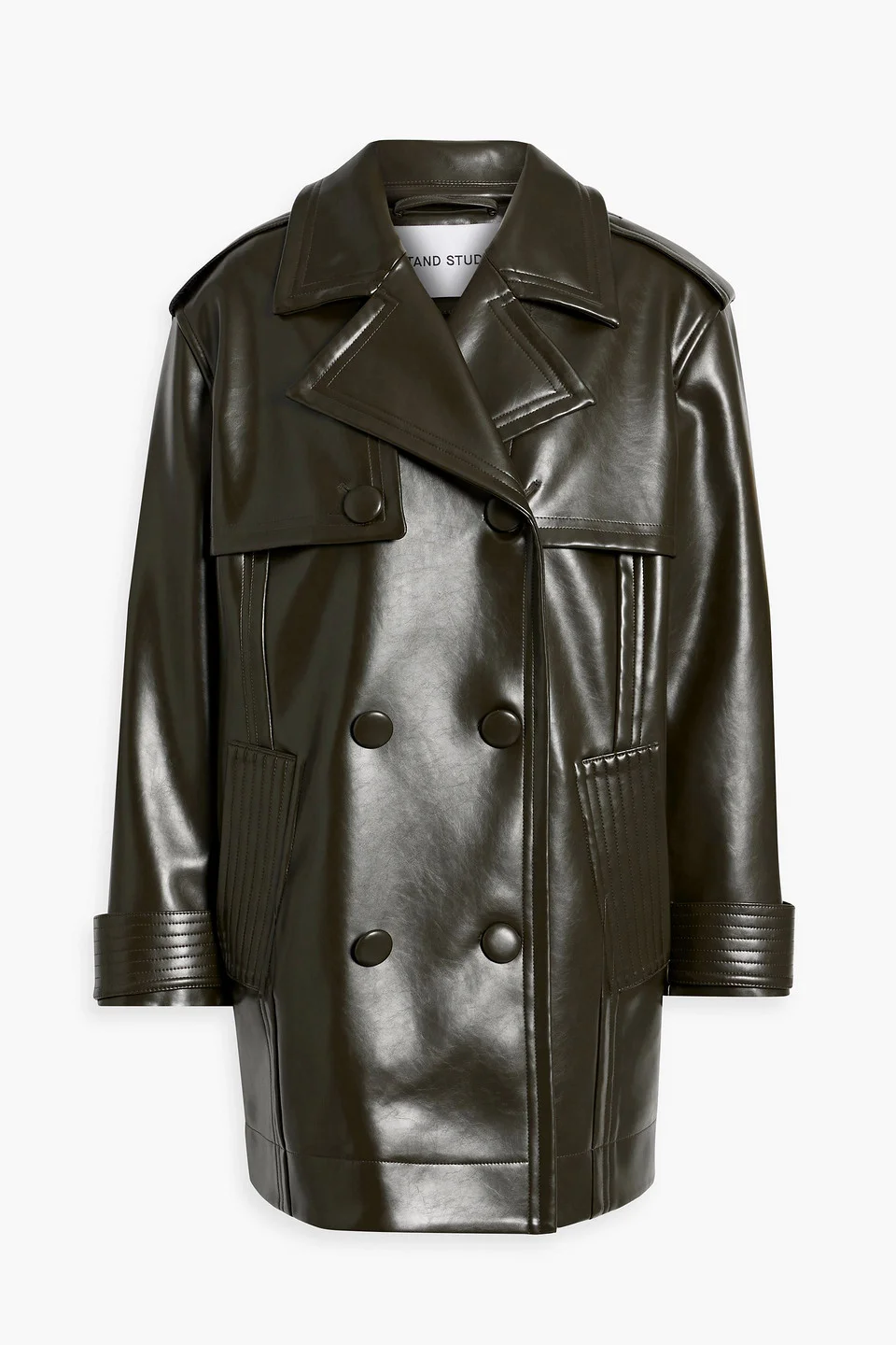 Trench coat synthetic material buttoned epaulettes storm flap buttoned cuffs fully lined button fastenings through double-breasted front mid-weight, non-stretchy fabric dry clean imported 50% Polyester 50% Polyurethane Product Code 1647597349566433