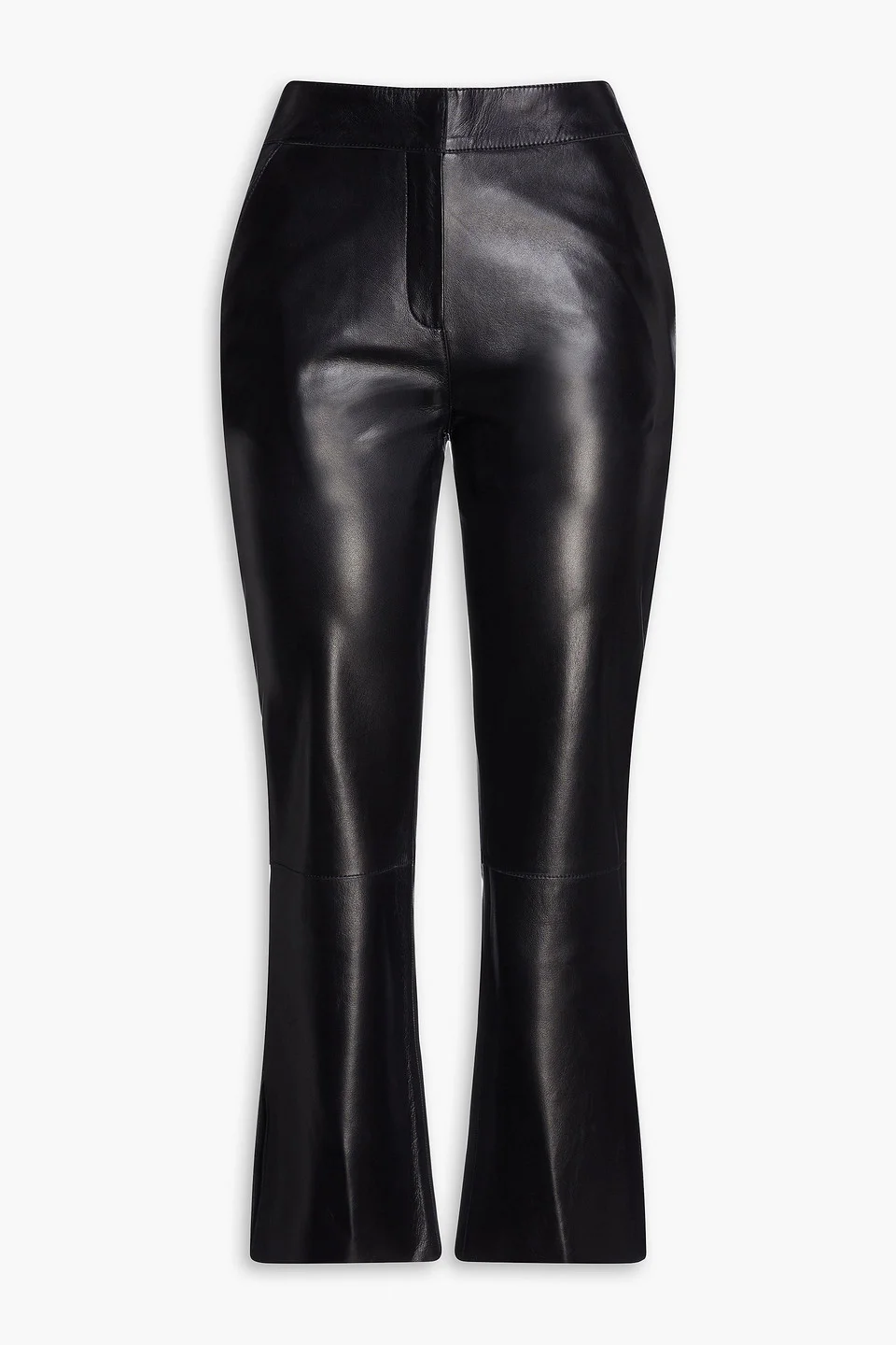 Kick-flare pants faux leather back welt pocket two side slant pockets high-rise cut unfinished hem concealed hook and zip fastening at front supple, non-stretchy leather mid-weight fabric specialist clean imported 100% Lambskin Product Code 1647597291118921