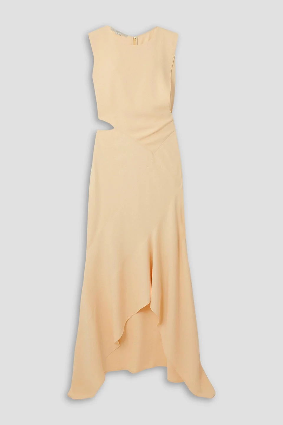 Keep the styling as effortless as the design with barely-there sandals gown stretch-crepe cutout asymmetric hem concealed hook and zip fastening at back partially lined mid-weight, stretchy fabric dry clean made in italy Stella McCartney's gown moves so beautifully thanks to the cut and exquisite use of fabric. Wear yours with heels, switching up your jewelry for different events. 66% Viscose 30% Acetate 4% Elastane Product Code 1647597310919002