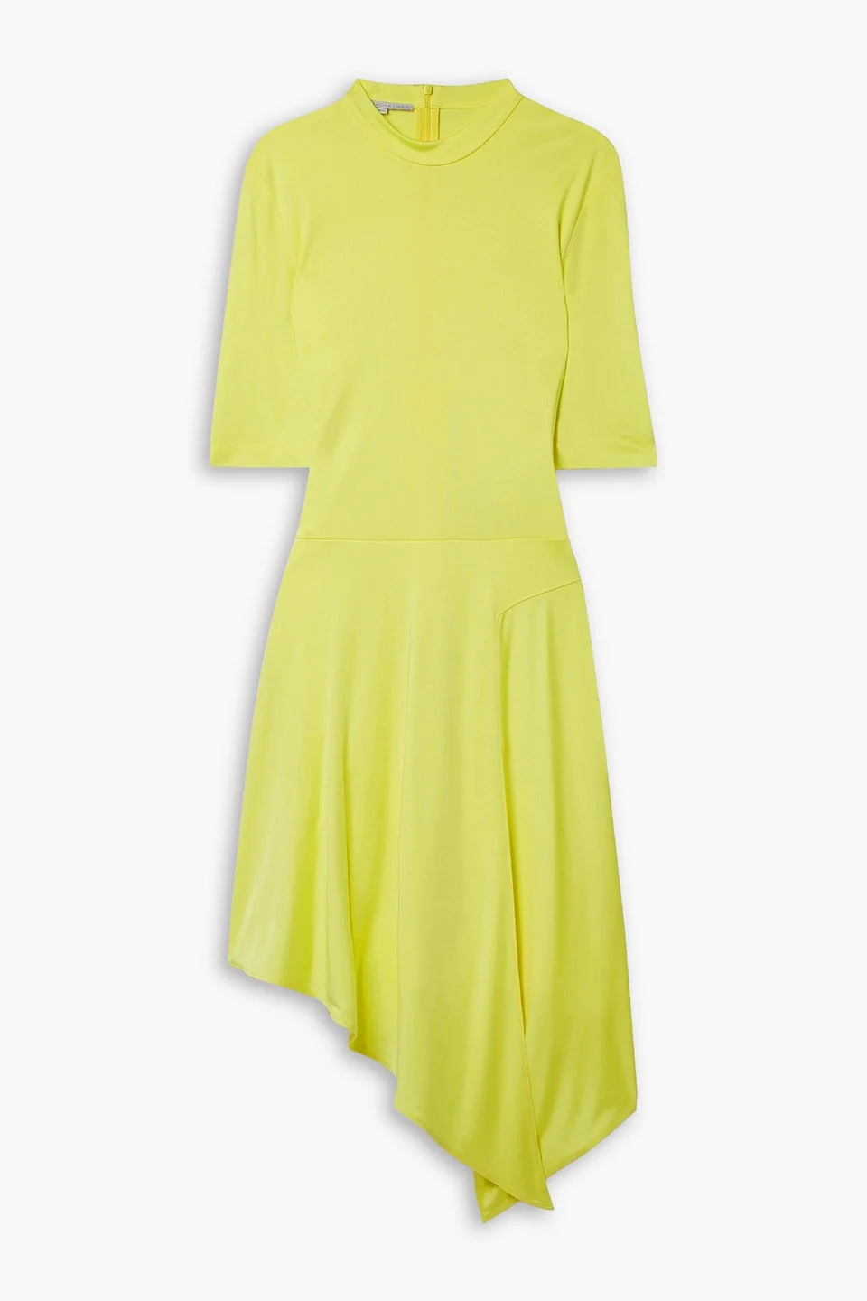 Dress stretch-jersey draped front split asymmetric hem concealed zip fastening along back mid-weight, stretchy fabric dry clean made in italy Stella McCartney’s mock-neck dress is cut from ‘Lemon’ stretch-jersey that hugs your figure before falling to a draped, asymmetric hem. Wear it with neutral accessories. 100% Viscose Product Code 1647597303676194