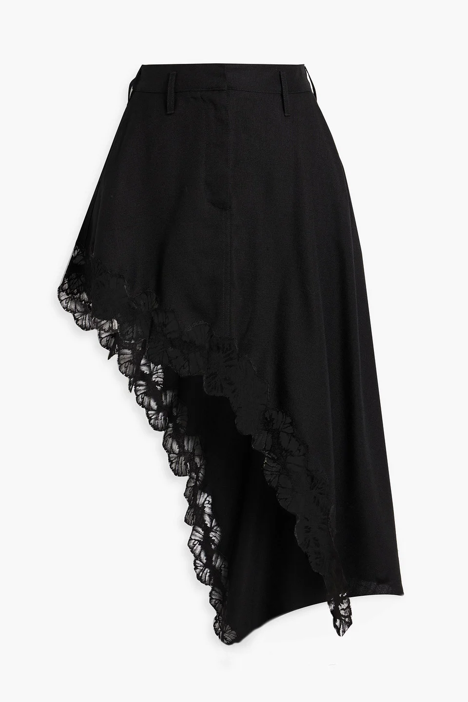 Asymmetric lace-trimmed grain de poudre midi skirt
