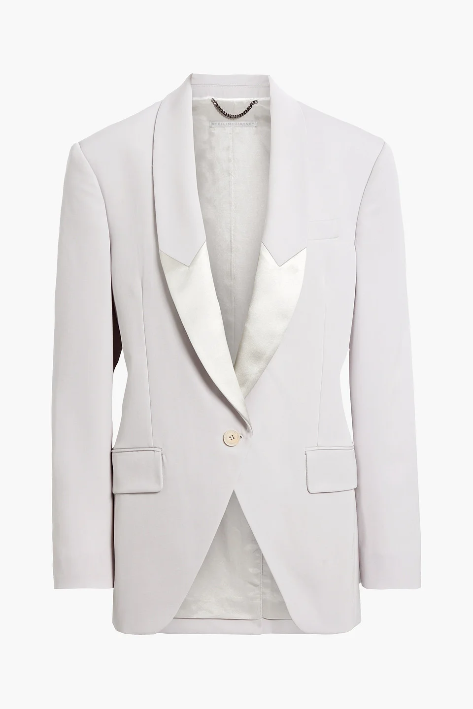 Blazer wool-twill satin trims breast pocket two front flap pockets button fastening at front fully lined back vent mid-weight, non-stretchy fabric dry clean made in italy 100% Wool Product Code 1647597284776591