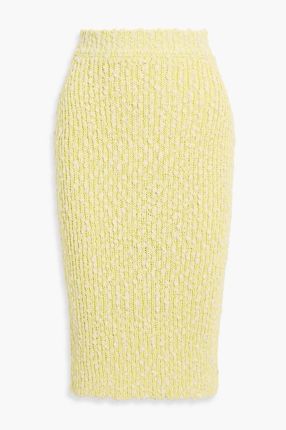 Skirt boucle-knit cotton-blend ribbed trims elasticated waist slips on mid-weight knit hand wash or dry clean made in italy 58% Cotton 35% Acetate 7% Polyester Product Code 46376663163045270