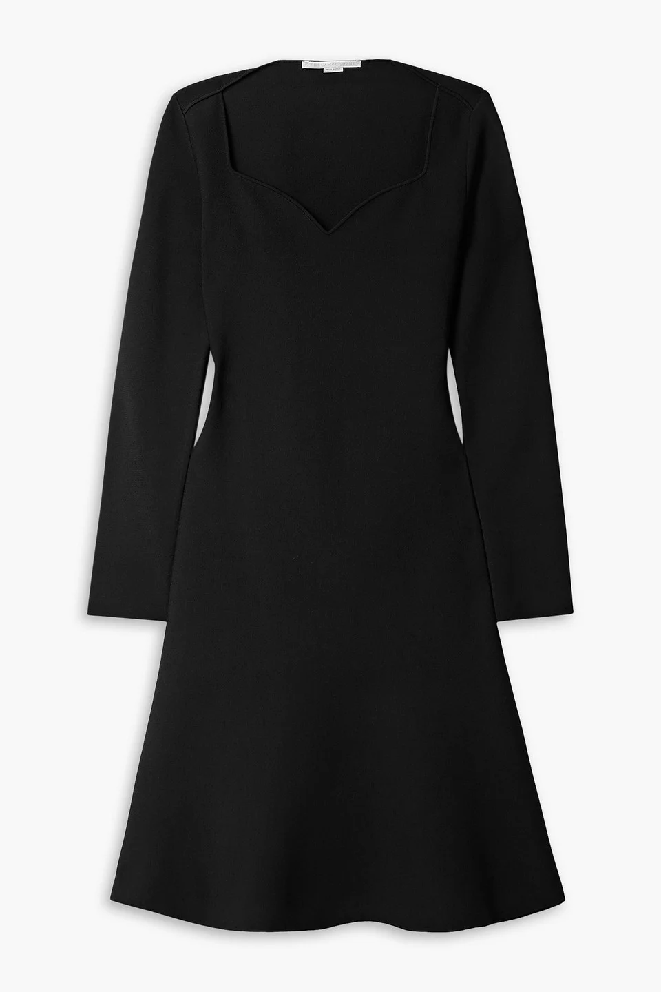 Dress cady flared hem slips on mid-weight knit dry clean made in italy Stella McCartney's cady dress has a pretty sweetheart neckline that frames the decolletage and fits slim through the bodice before opening up to a floaty hem. Wear it with thigh-high boots or classic pumps. 83% Viscose 17% Polyester Product Code 1647597276169938