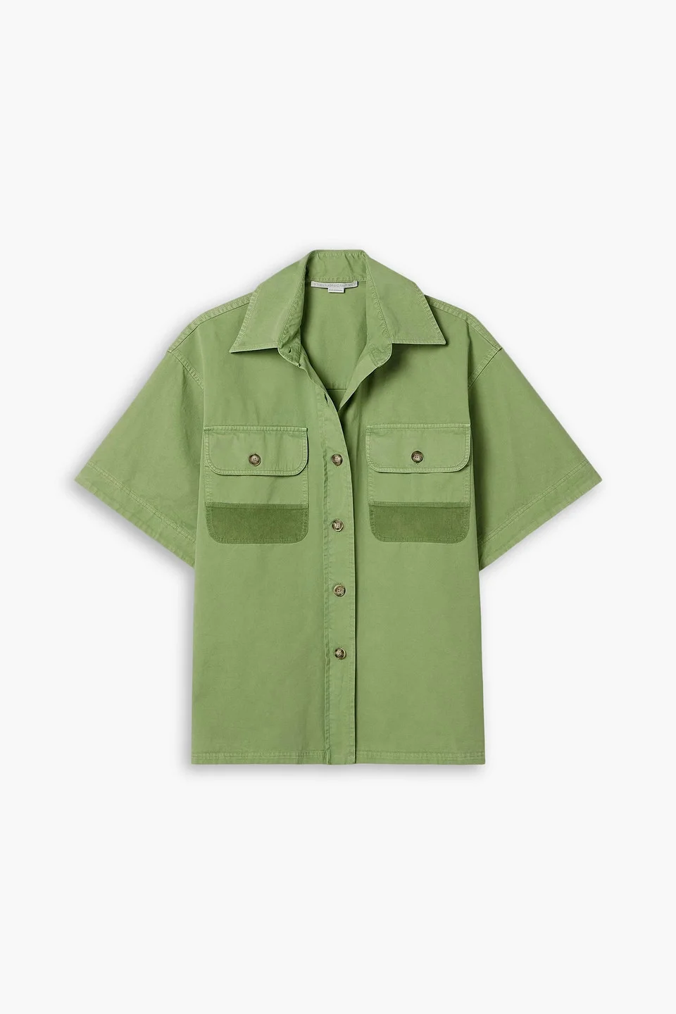 Shirt cotton-twill corduroy trims breast pockets button fastenings through front mid-weight, non-stretchy fabric dry clean made in italy Stella McCartney's shirt is made from certified cotton-twill in a fresh 'Pistachio' shade and has tonal corduroy tracing the edges of the buttoned chest pockets. Wear it with everything from jeans to tailoring. 100% Cotton Product Code 46376663162961571