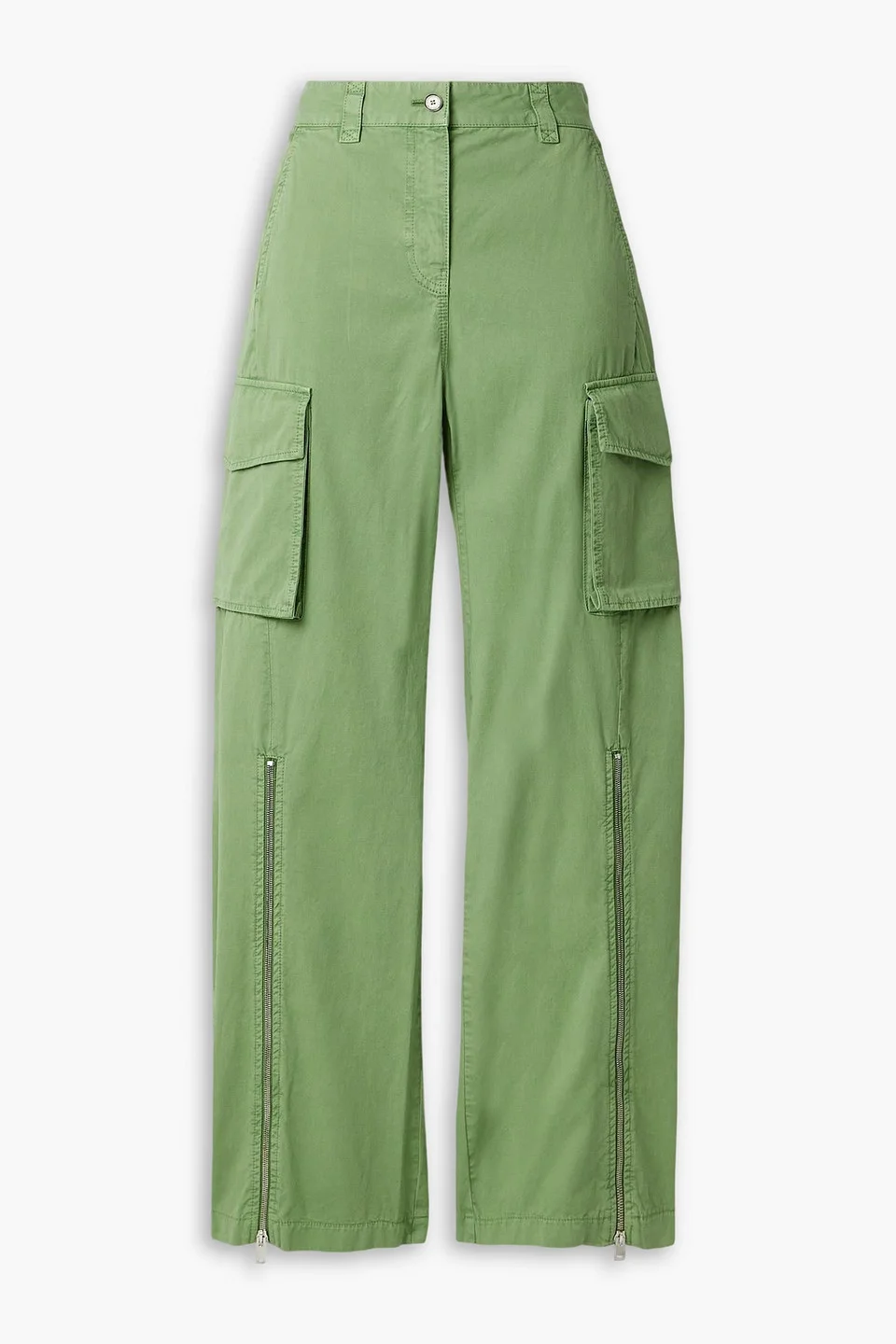 Cargo pants cotton-twill corduroy trims multipockets belt loops high-rise cut zipped cuffs button and concealed zip fastening at front mid-weight, non-stretchy fabric dry clean imported Stella McCartney's pants have zippers from the knee to the hem, so you can change the shape from wide to flared. Made from cotton-twill, they're trimmed with corduroy and finished with cargo pockets on either thigh. 100% Cotton Product Code 1647597325333828