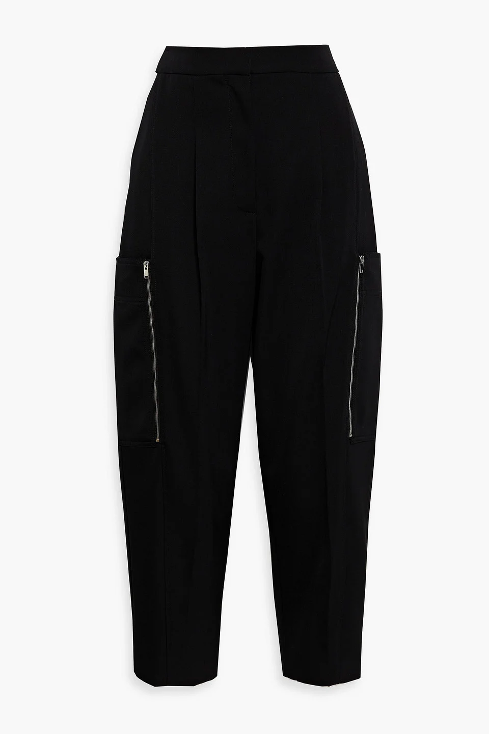 Cropped zip-detailed wool-twill tapered pants