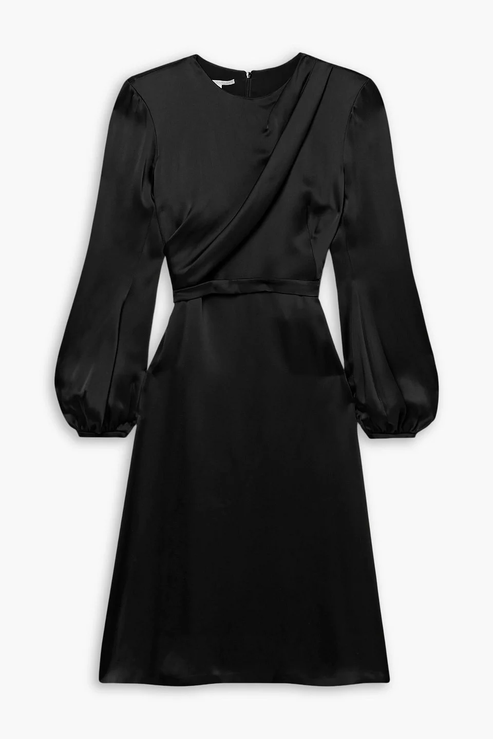 Dress duchesse-satin shoulder pads draped detachable belt gathered sleeves buttoned cuffs concealed hook and zip fastening at back partially lined mid-weight, non-stretchy fabric dry clean made in italy 64% Acetate 36% Viscose Product Code 1647597324573963