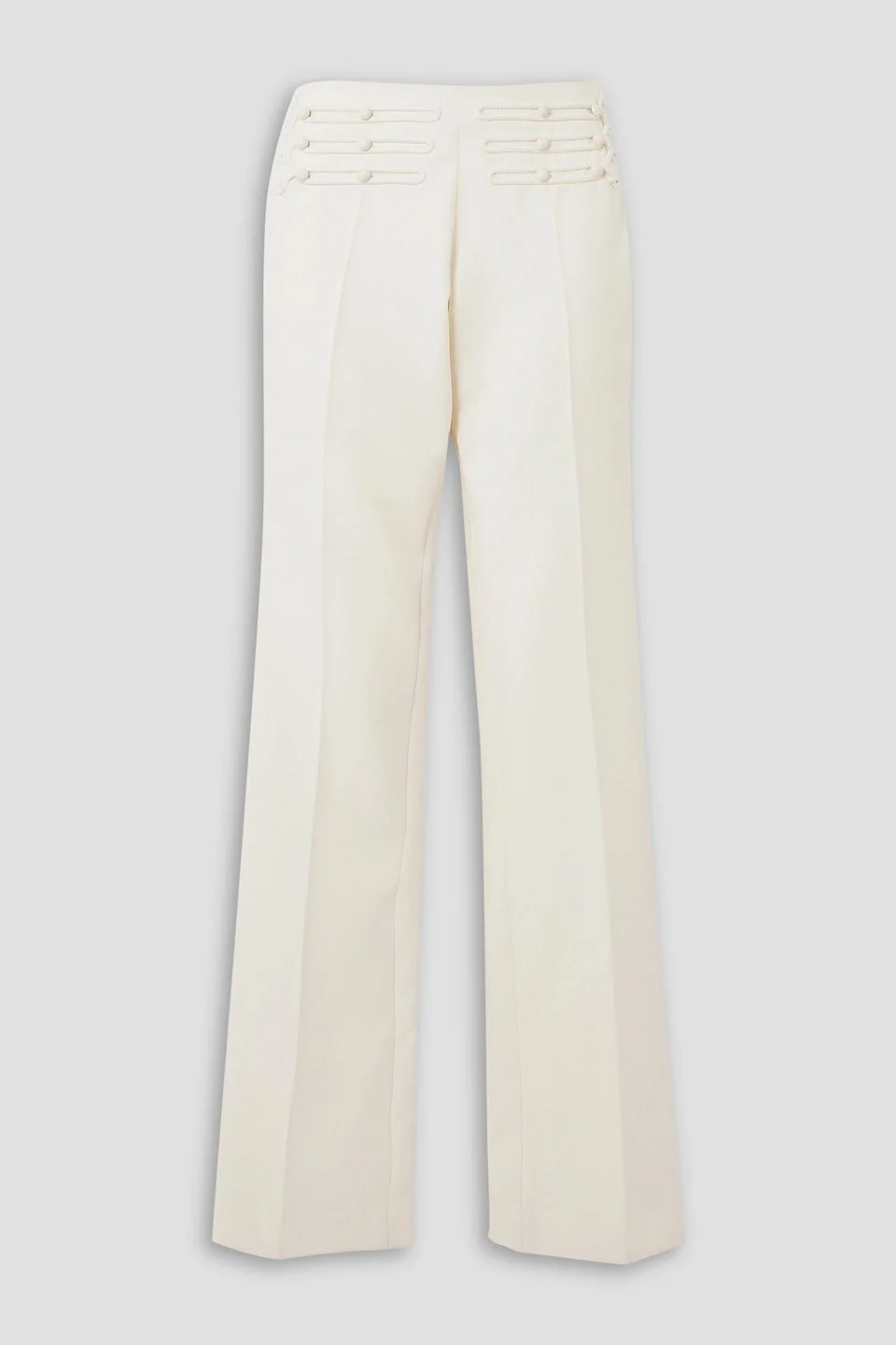 Embroidered button-embellished grain de poudre wool bootcut pants