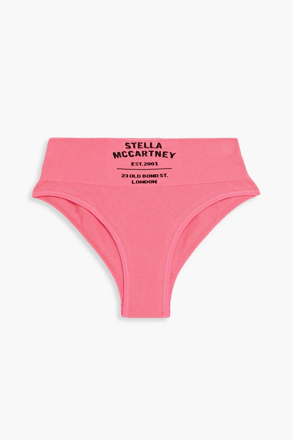 Embroidered ribbed cotton-blend jersey mid-rise briefs