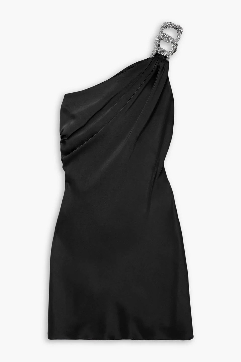 Falabella Crystal Chain Double Satin One-Shoulder Mini Dress