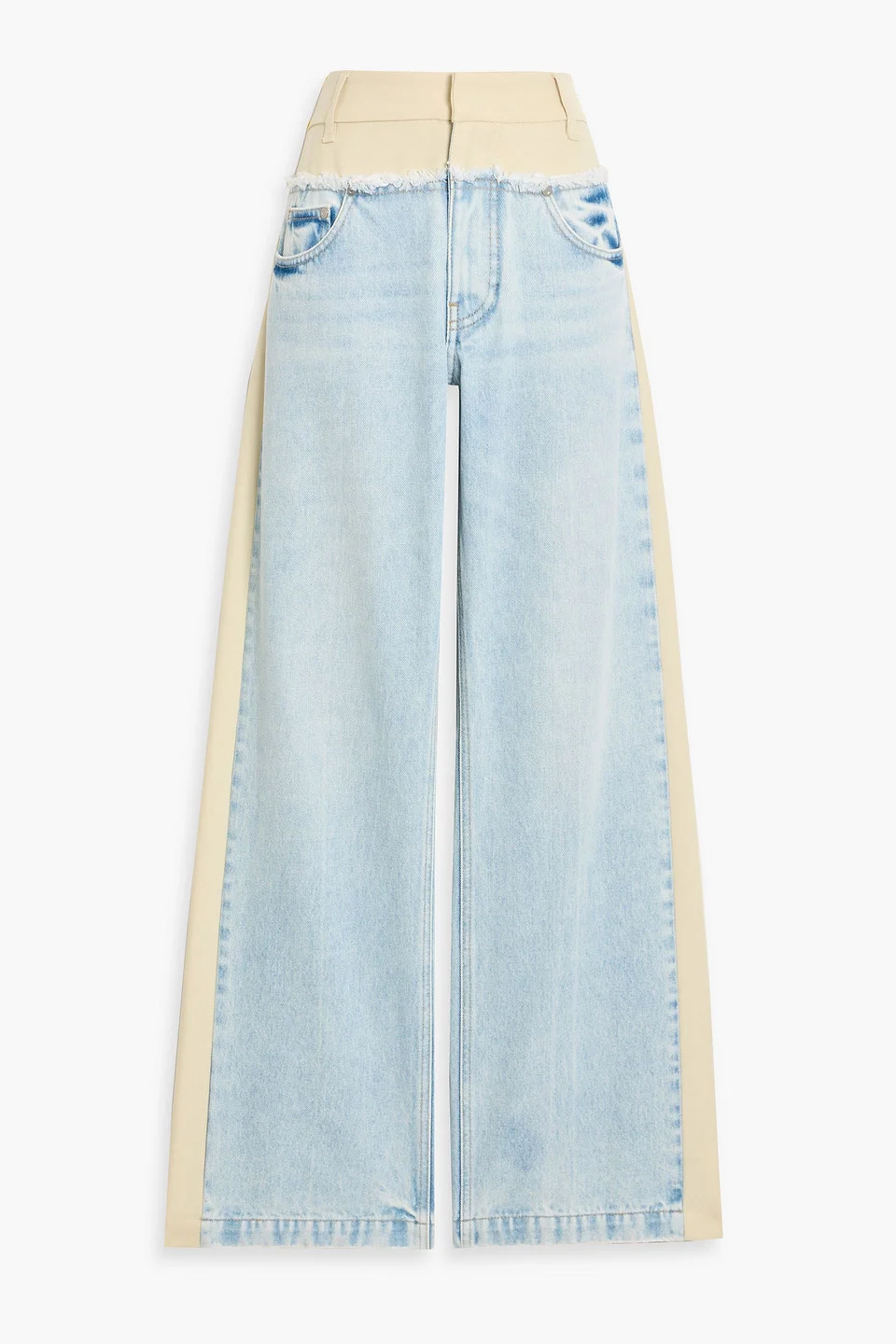 Wide-leg jeans denim gabardine paneled frayed trims belt loops high-rise cut five pockets concealed hook, button and zip fastening at front mid-weight, non-stretchy fabric machine wash or dry clean made in italy 100% Cotton Product Code 46376663163044230