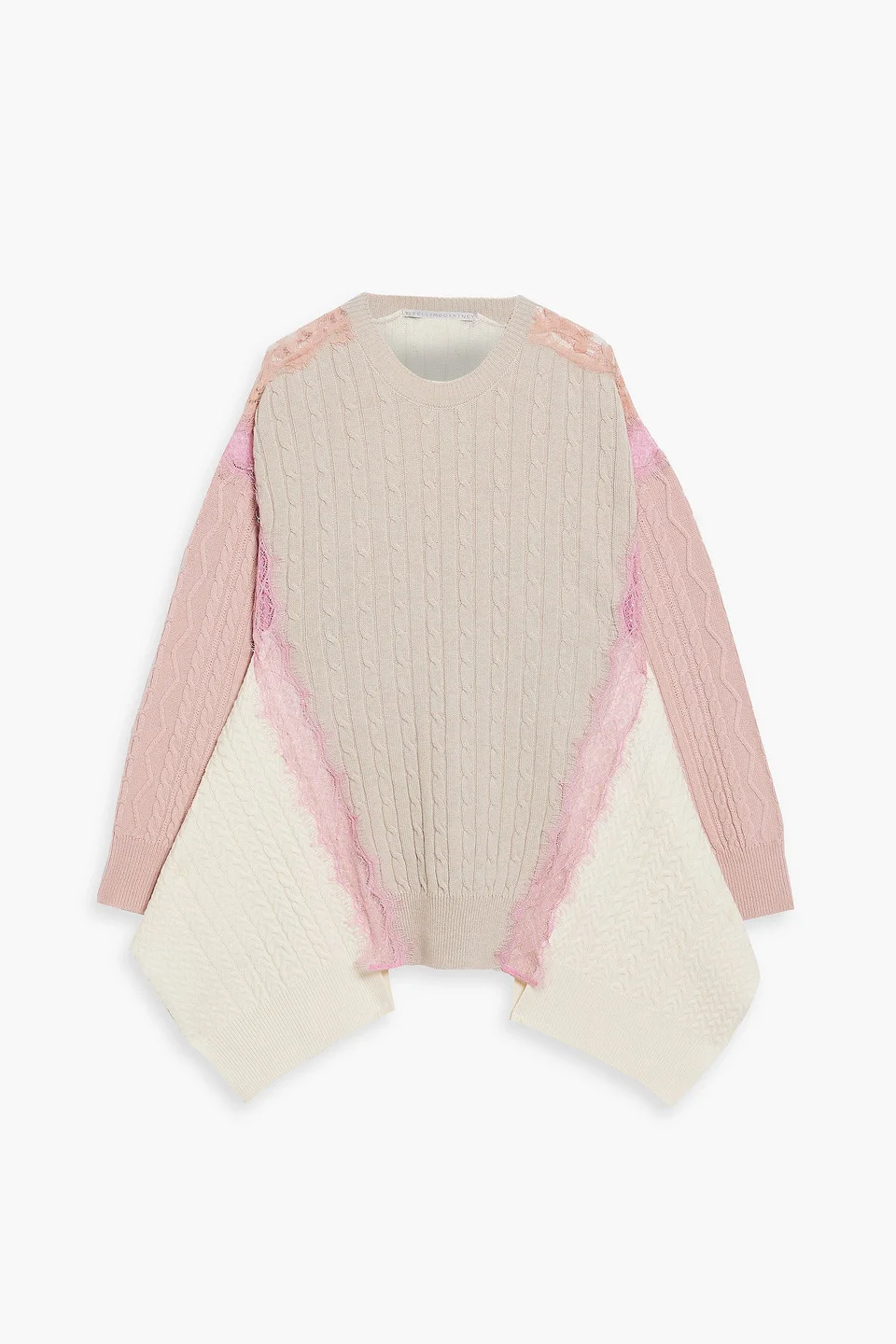 Sweater color-block wool cable-knit lace trims slips on asymmetric hem mid-weight knit hand wash made in italy 100% Virgin Wool Product Code 1647597284977321