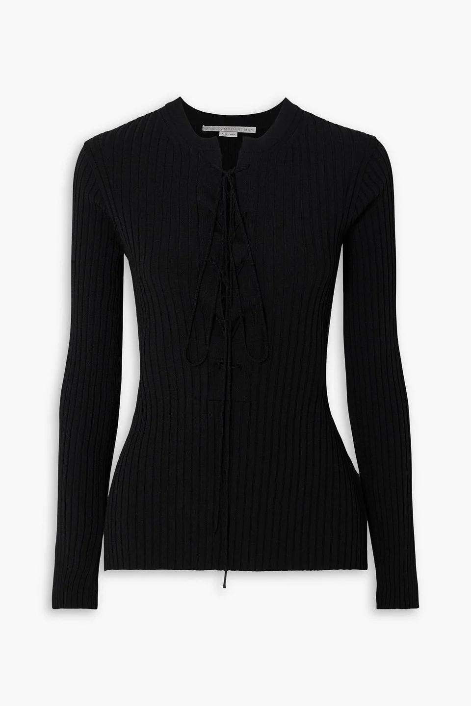 Top ribbed-knit lace-up front mid-weight knit dry clean made in italy Stella McCartney's top is made with certified viscose and finely ribbed to create a figure-hugging fit. It's defined by the plunging lace-up neckline, which can be adjusted to show just the right amount of skin. 83% Viscose 17% Polyester Product Code 1647597333129264