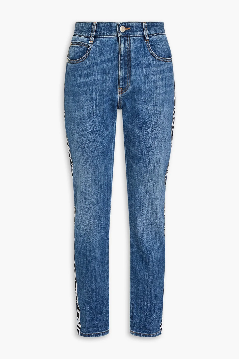 Logo jacquard-paneled mid-rise slim-leg jeans