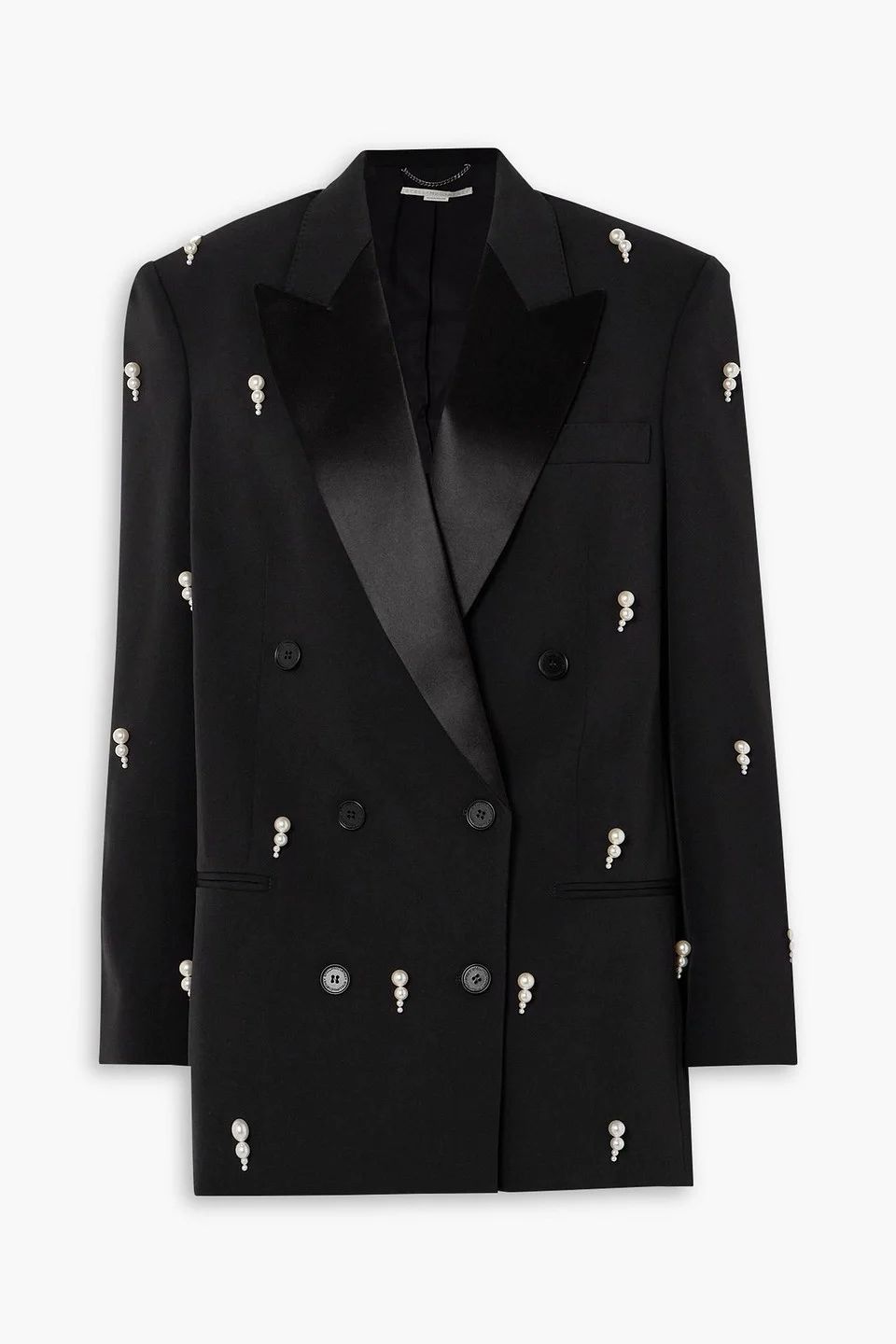 Oversized faux pearl-embellished double-breasted wool-blend blazer