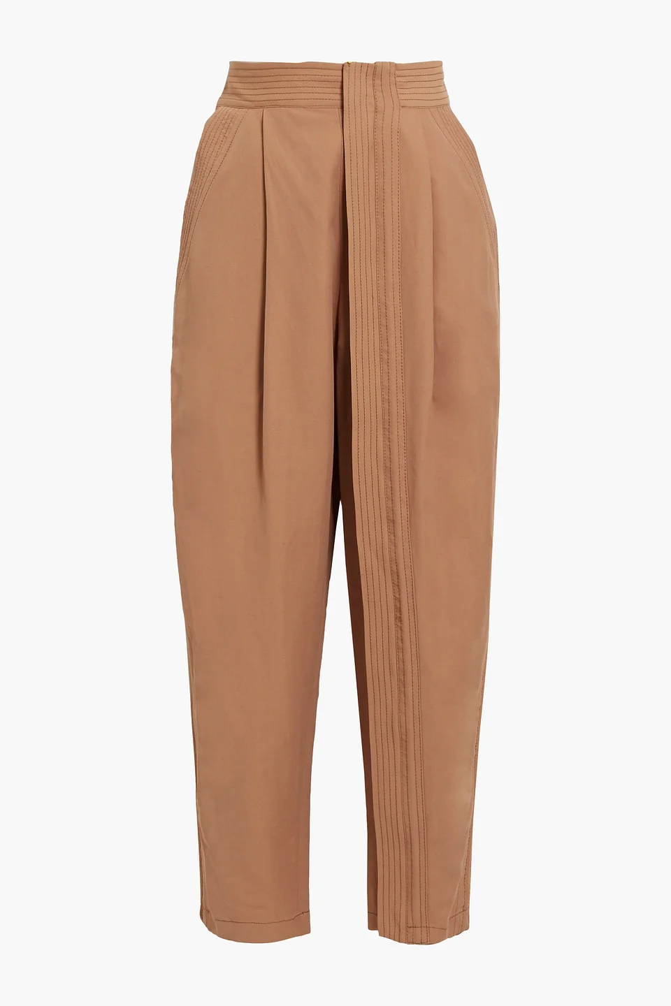 Tapered pants twill pleated two front slant pockets two back welt pockets high-rise cut concealed hook, button and zip fastening at front non-stretchy fabric mid-weight fabric dry clean made in italy 40% Polyamide 36% Cotton 24% Linen Product Code 1647597284805939