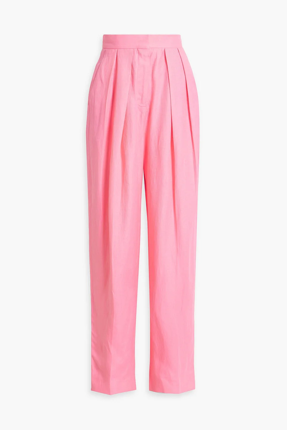 Tapered pants twill pleated two back welt pockets high-rise cut concealed hook, button and zip fastening at front mid-weight, non-stretchy fabric dry clean imported 69% Viscose 31% Linen Product Code 1647597349637163